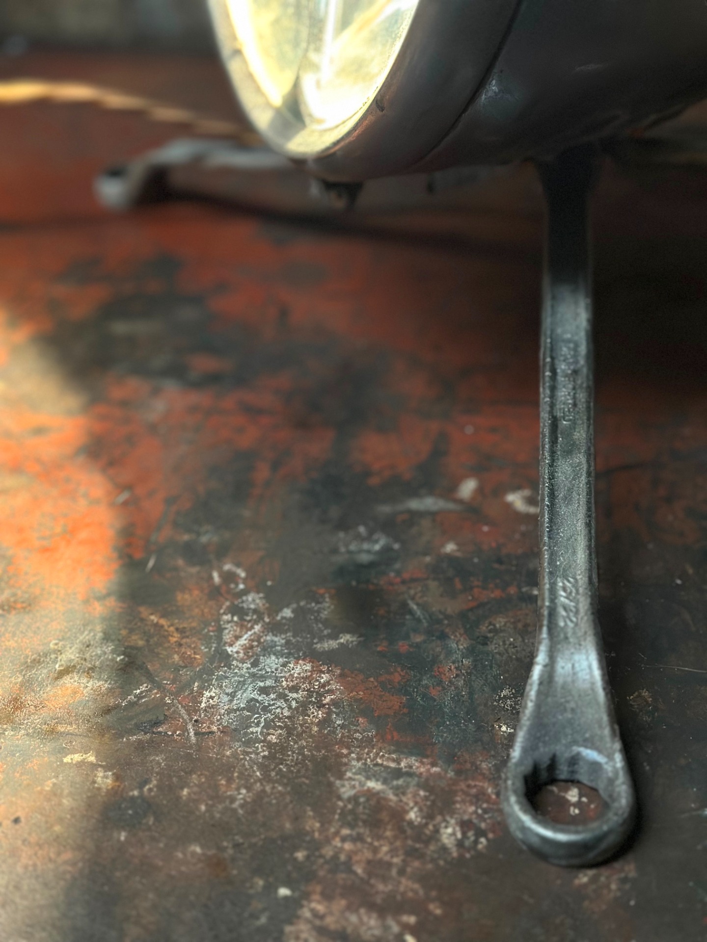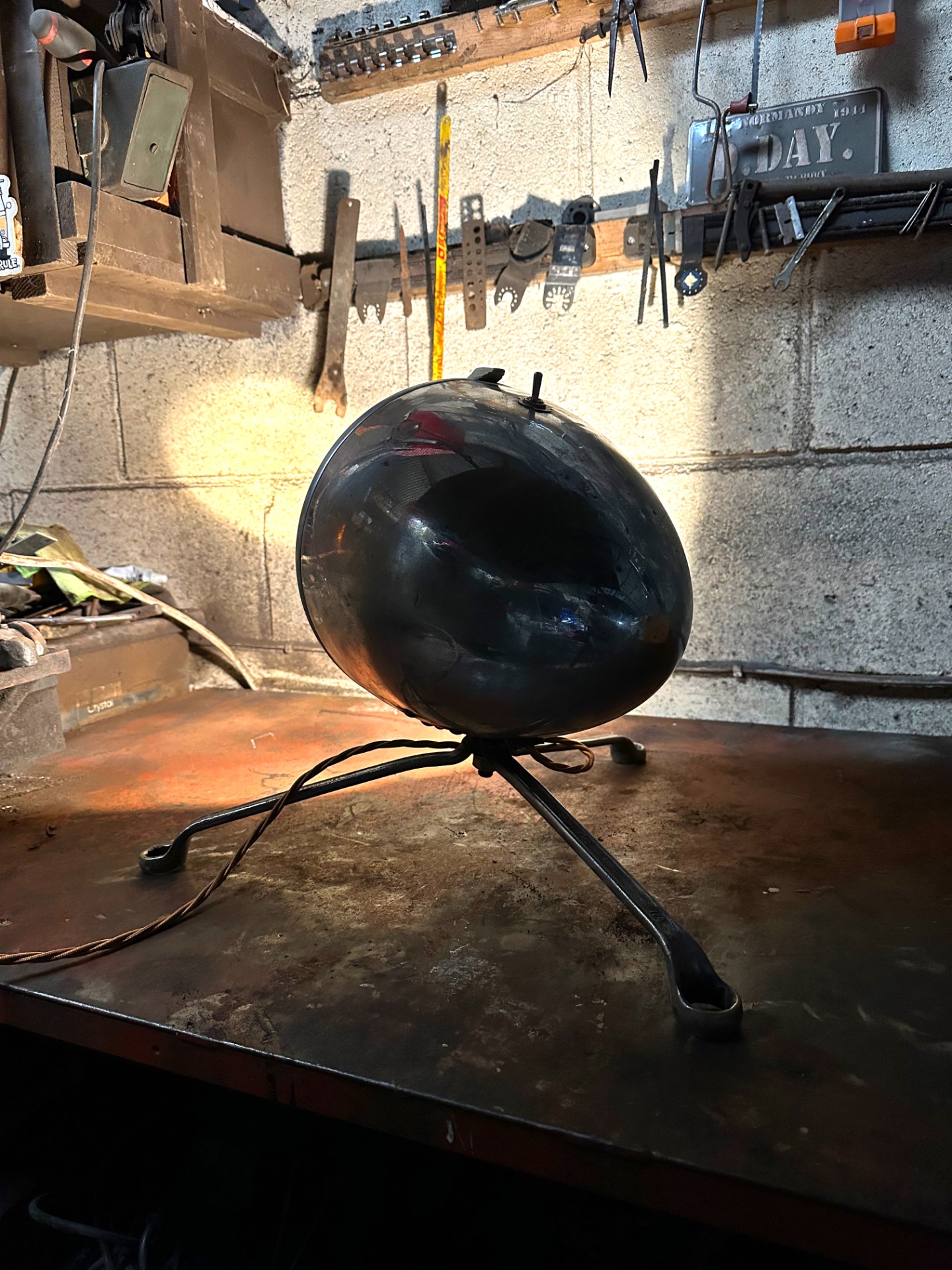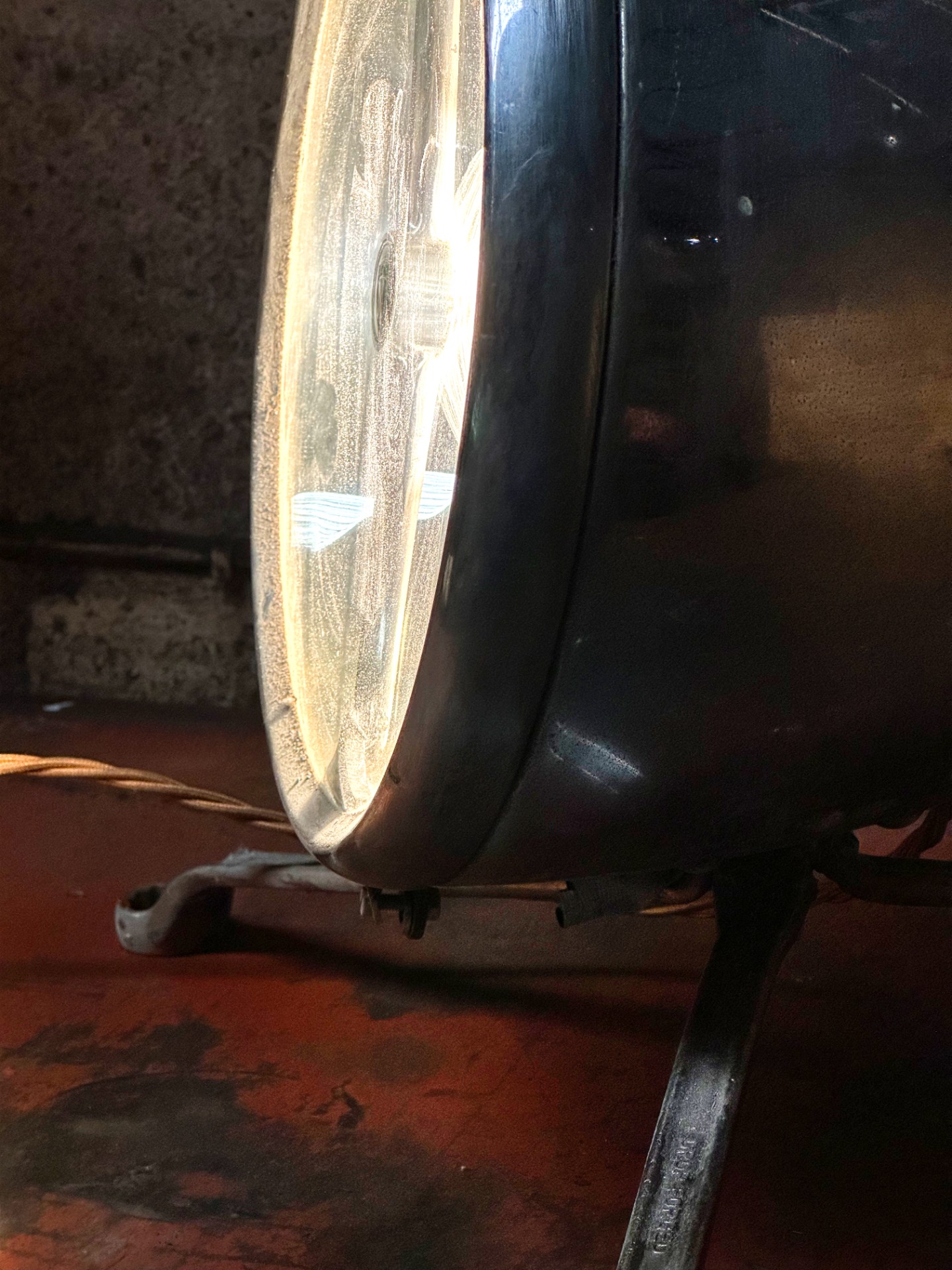 An original 1930s Alfa Romeo chrome headlight, reimagined as a